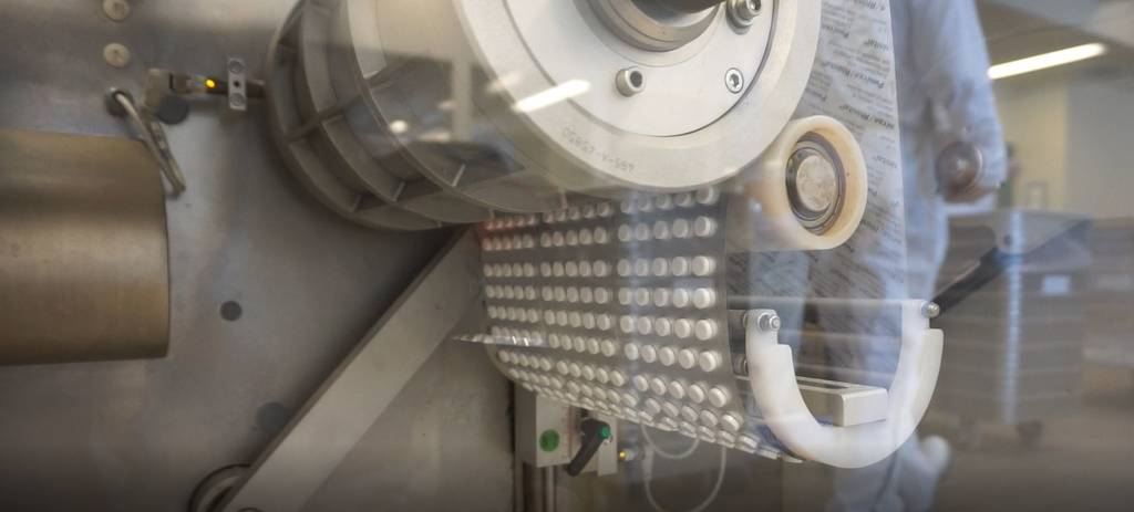 Es gibt tatsächlich auch Fanta-Schale und Pistill, aber auch eine Salbenprozessanlage, in der bis zu acht Kilogramm halbfeste Arzneiformen hergestellt werden können. Alle Parameter, wie Rührgeschwindigkeit und -zeit sowie Temperatur, kann man hier genau einstellen. Neue Salben werden also zunächst unter ähnlichen Bedingungen wie später in der Produktion hergestellt und anschließend auf ihre Stabilität untersucht, bevor der erste Ansatz mit bis zu 800 kg in der Produktion gefahren wird.